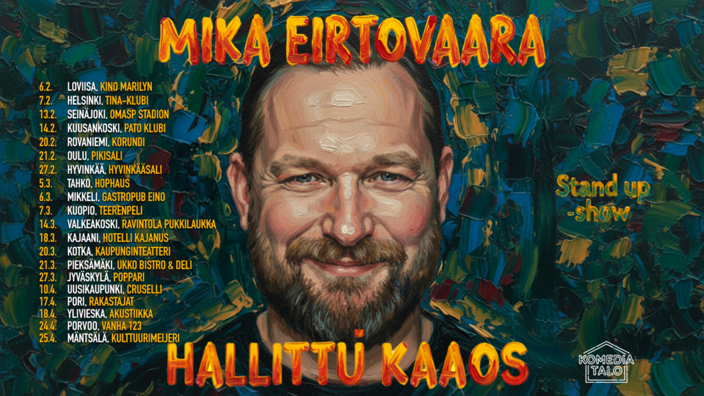 Mika Eirtovaara on yksi suomalaisen stand upin pitkäaikaisimmista tekijöistä – yli kahden vuosikymmenen kokemuksella hän on nähnyt ja kokenut kaiken, mutta lavalla säilyy aina utelias, leikkisä energia.